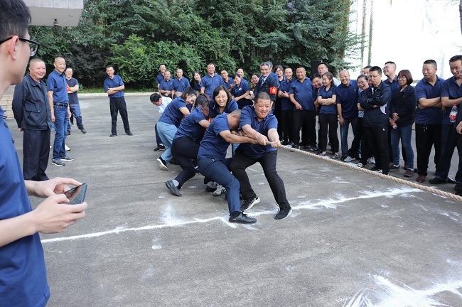 在隊長的帶領(lǐng)下,各隊隊員高呼口號,士氣大振。當(dāng)比賽的哨聲一響起,隊員們口中高呼“一二、一二”,雙手緊握長繩,拼命往后拉。未參賽的員工自發(fā)組成啦啦隊為比賽隊員加油,吶喊聲此起彼伏,激烈的比賽把活動推到了高潮。比賽過程中,各參賽隊員努力拼搏,尤其在勝負(fù)難分時,大家毫不退卻,咬緊牙關(guān),堅持到底。